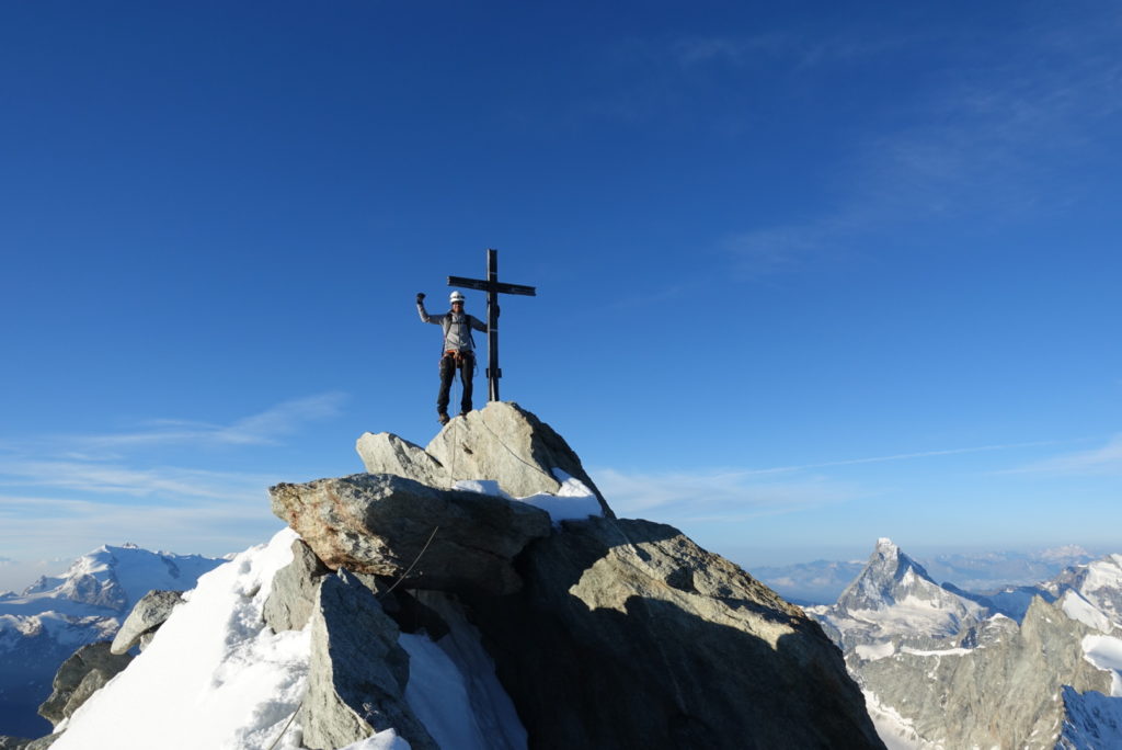 From there, the final ridge to the summit demanded focus. It was exposed in places, yet in good condition. However, my client moved with confidence and steady footwork. Finally, we reached the summit, greeted by sweeping views over the Eiger, Mönch, and far into the Valais.